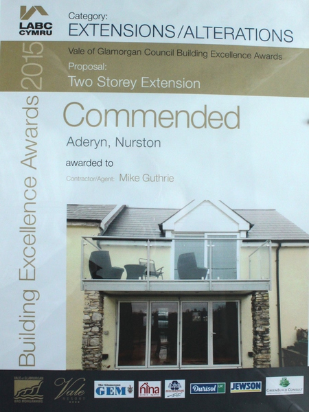 Also to once again be nominated for awards in the Vale of Glamorgan Building Excellence Awards 2015 is a great honour.See Vale Gem article here Adding to the success of 2015 we are pleased to announce our highly commended awards achieved in 2016, please see the copies of the award certificates below.
